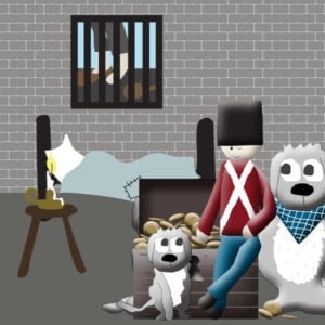 Det skønne eventyr om soldaten, kisten med penge og de tre hunde, er her gjort til en rigtig flot snekugle.